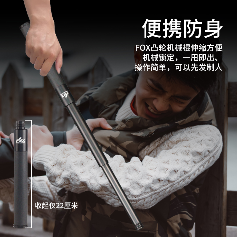 FOX凸轮机械棍 狐狸伸缩甩棍德国技术防身武器合法驱狗三节打狗棍