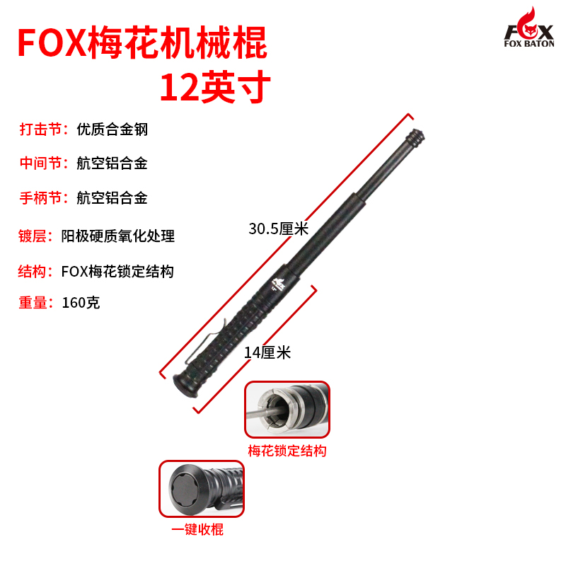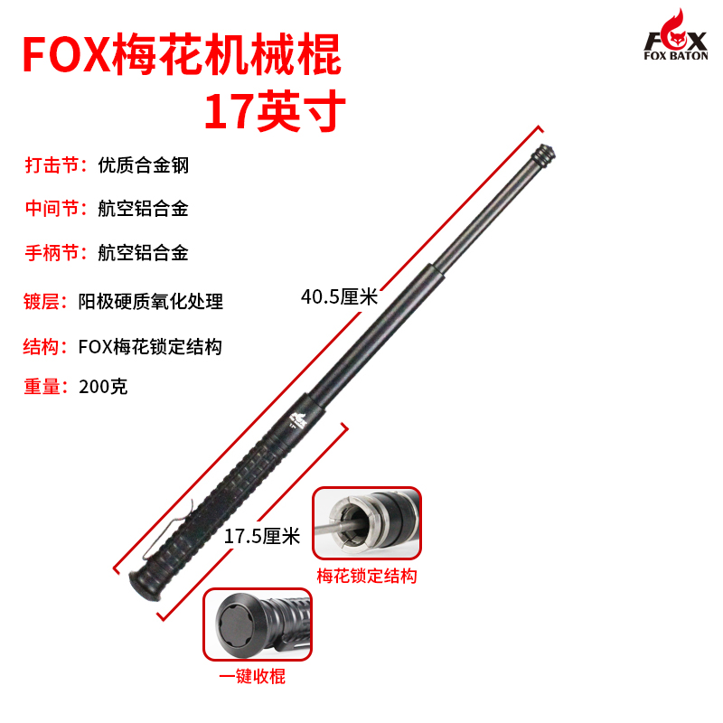 狐狸FOX梅花锁特工机械棍便携伸缩迷你甩棍 防身武术车载用品合法