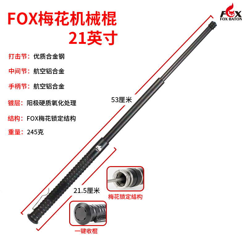 狐狸四节机械棍FOX加长甩棍合法防身车载挡刀甩棒打狗棍棒伸缩棍