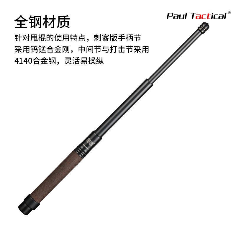 弘安保罗牛皮刺客甩棍全钢便携机械伸缩棍17英寸自卫防身甩辊武器