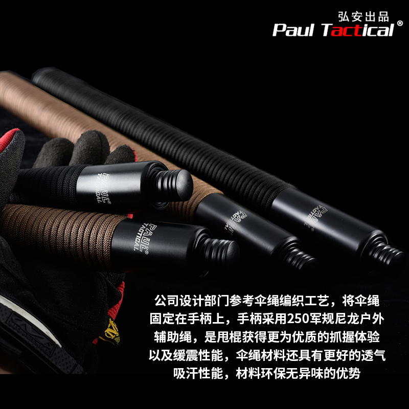 弘安保罗一米棍伞绳版机械甩棍挡刀加长版一键伸缩带护手超长结实