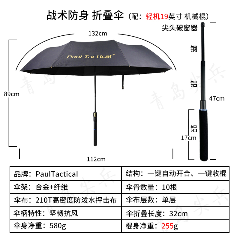 战术折叠伞 内含机械甩棍 弘安保罗折叠伞