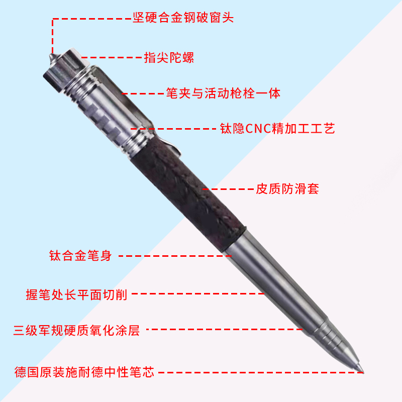 弘安保罗钛浩战术笔钛合金陀螺户外车载破窗合法防身武器写字笔