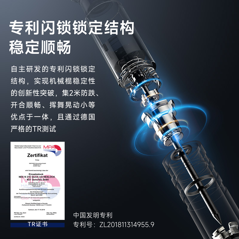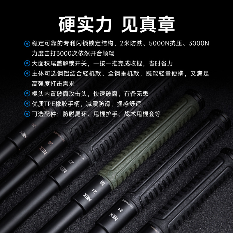 纳丽德NEX新品碳绿色机械棍快客勤务棍甩棍防身保护安全高端绿棍
