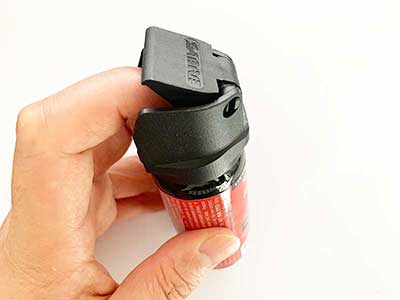 都有防止误按的盖子,喷的时候掀开盖子,按压里面的按钮!